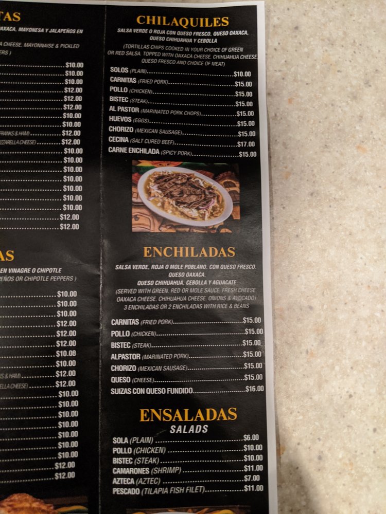 fried corn tortillas topped with green or red salsa, onions. Cilantro and queso fresco